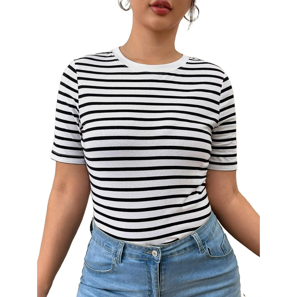 The foundation of my travel attire begins with the Women’s Casual Striped Round Neck Black and White T-shirt. Its timeless monochrome pattern not only offers versatility but also complements my sun-kissed glow, proving that simplicity can be a powerful statement.